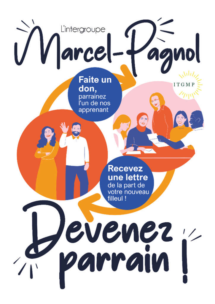 L’Intergroupe Marcel-Pagnol (ITGMP) relance à la rentrée 2025 sa campagne de parrainage en faveur de ses apprenants. Après le succès rencontré l’an passé — 60 apprenants parrainés et plus de 9000 € récoltés, grâce à votre générosité — nous sommes plus que jamais motivés à poursuivre cette belle aventure humaine. Pourquoi parrainer ? Notre association […]